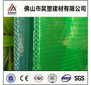 (3)防紫外線:蜂窩陽光板一面共擠有抗紫外線(UV)涂層,另一面具有抗冷凝處理,集抗紫外線、隔熱防霧滴功能于一身。可阻擋紫外線穿過,及適合保護貴重藝術品及展品,使其不受紫外線破壞。