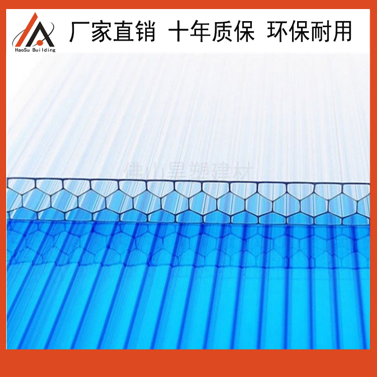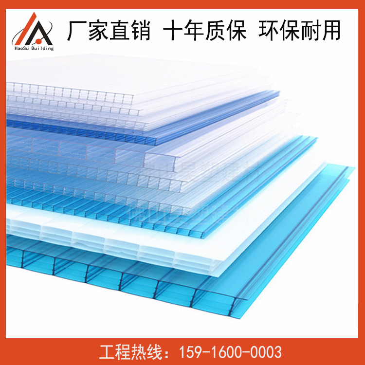(8)節能性:夏天保涼,冬天保溫,雙層陽光板有更低于普通玻璃和其它塑料的熱導率(K值),隔熱效果比同等玻璃高7%-25%,雙層陽光板的隔熱最高至49%。從而使熱量損失大大降低,用于有暖設備的建筑,屬環保材料。