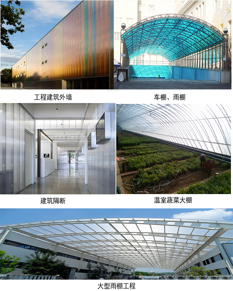 (9)溫度適應性:雙層陽光板在-40℃時不發生冷脆,在125℃時不軟化,在惡劣的環境中其力學,機械性能等均無明顯變化。